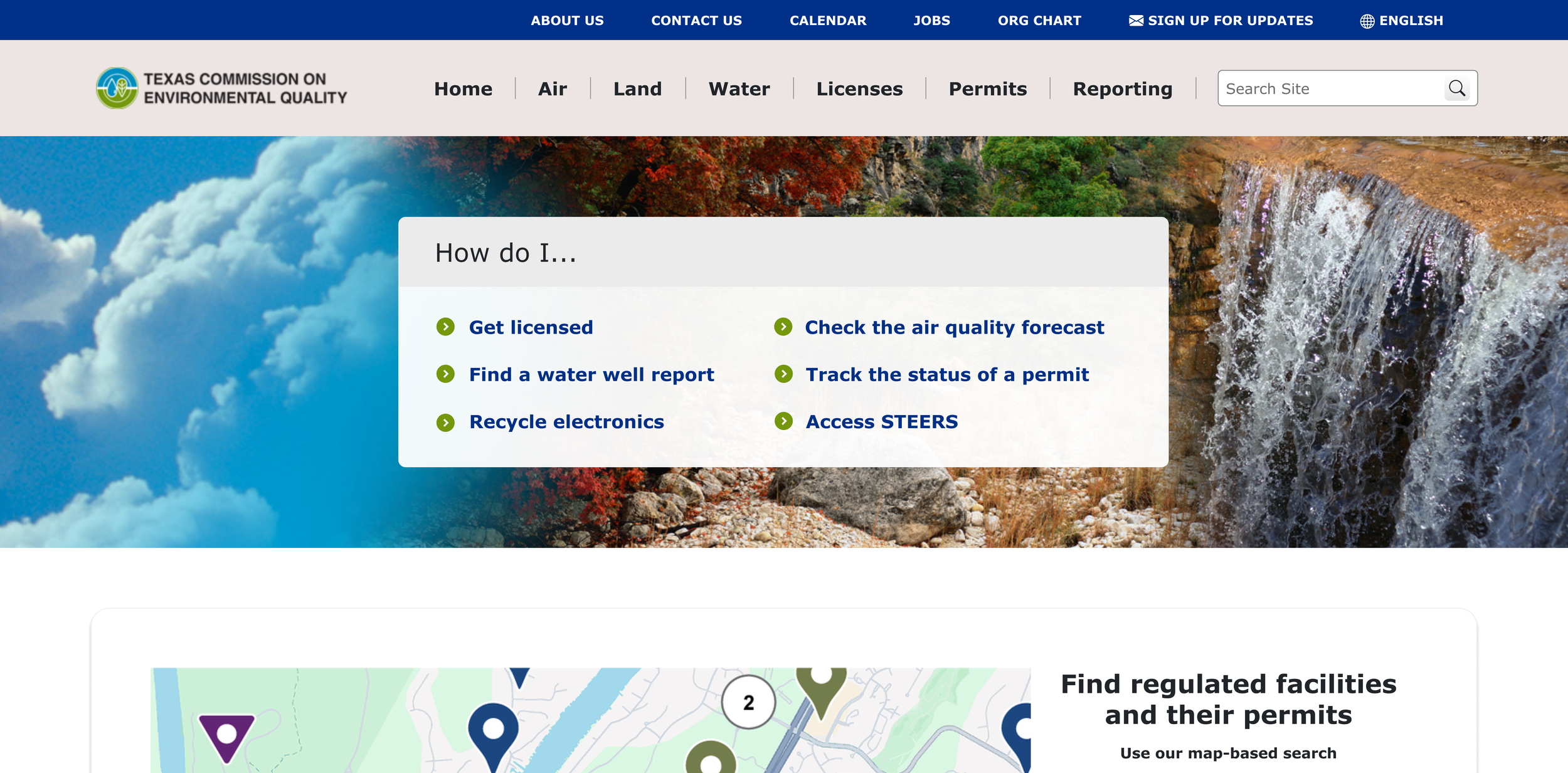 We started with analyzing the websites of other state environmental agencies, finding that most states generally used one of three patterns: search bar, announcements, or tasks.