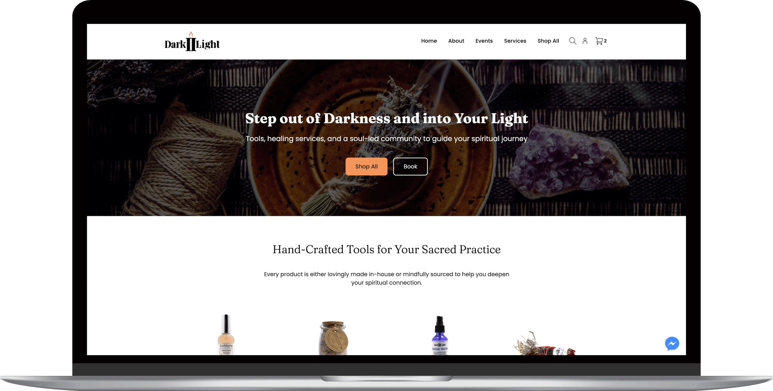 As we progressed in the project, we naturally began to shift the brand design, opting to use a white background to highlight the "Dark to Light" brand theme and create a clean background for product photos.